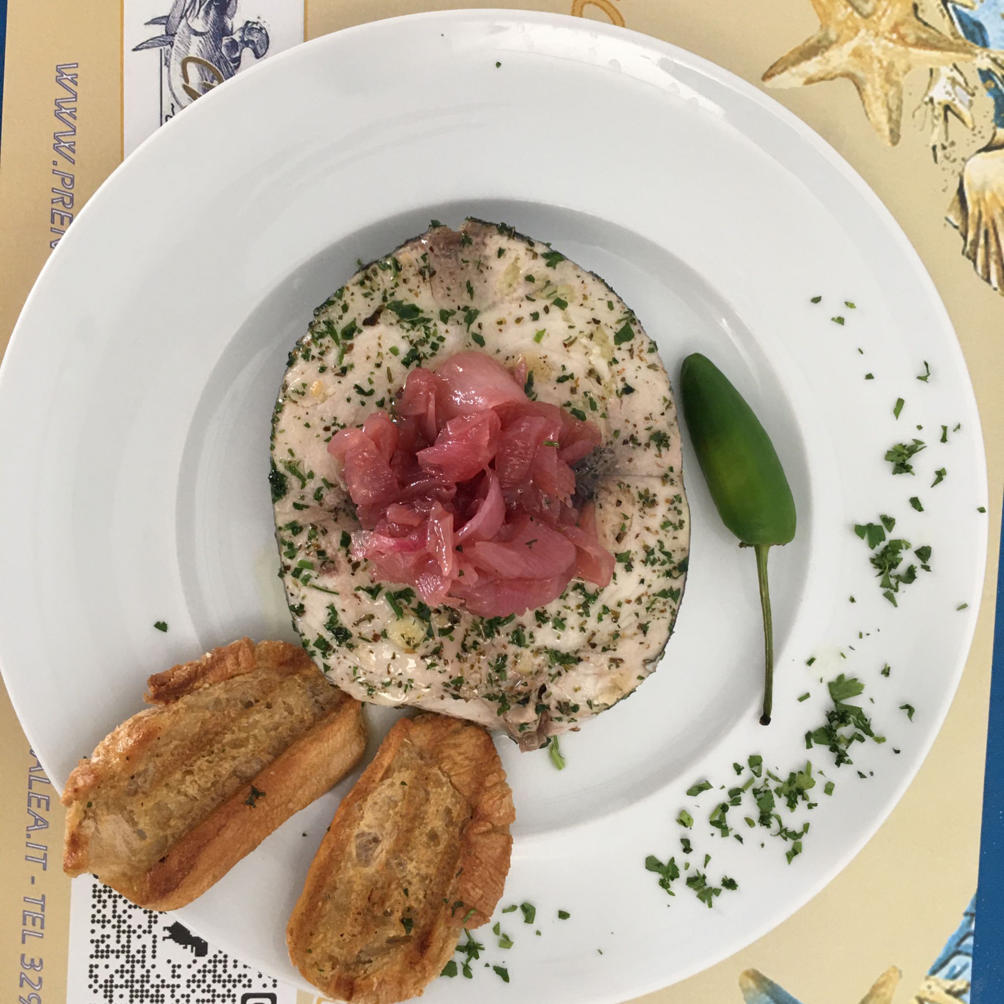 Ottimo da condividere , pesce spada ,olio e sale , salmoriglio e lattuga
