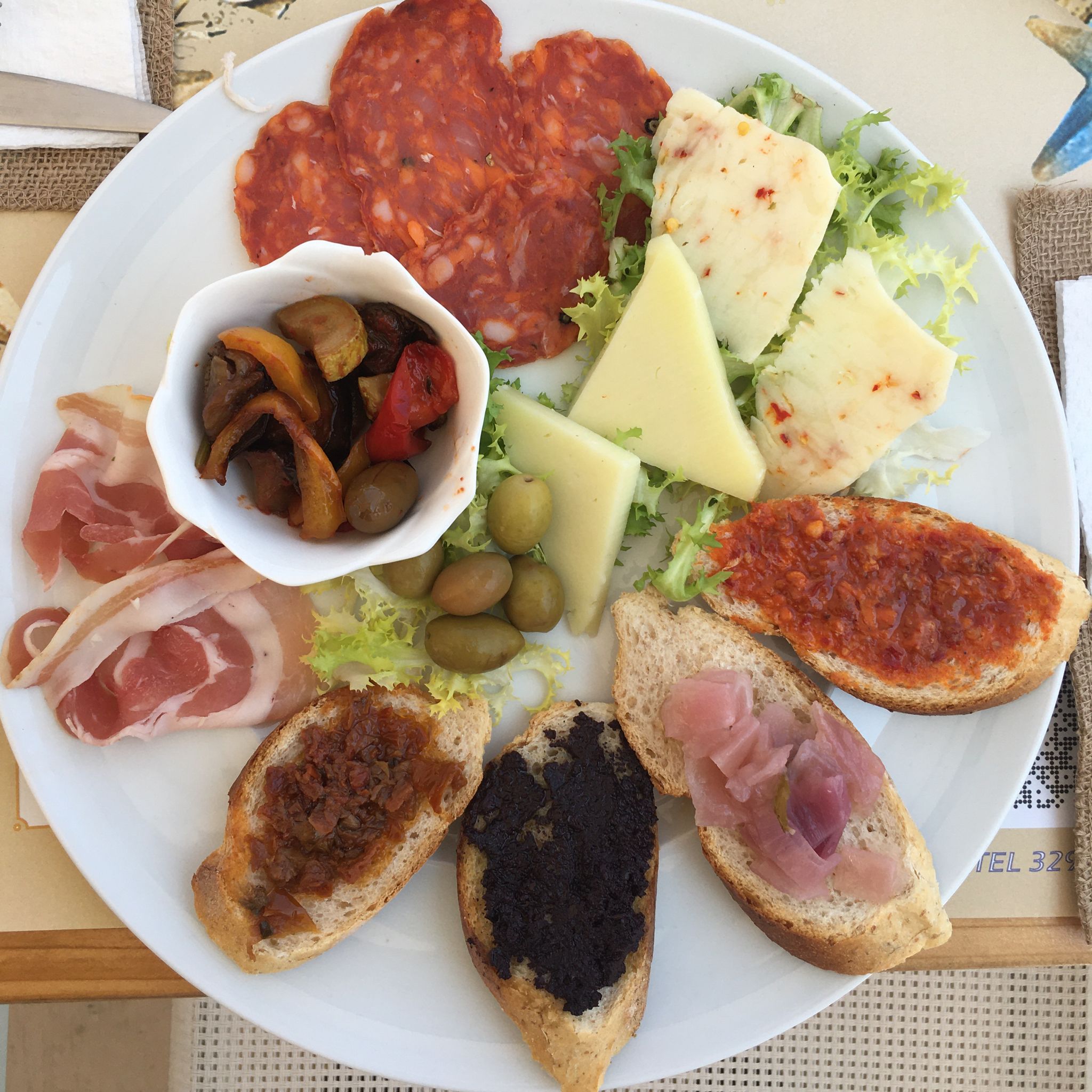 Salumi misti, formaggi misti , bruscette miste ,caponata e olive
